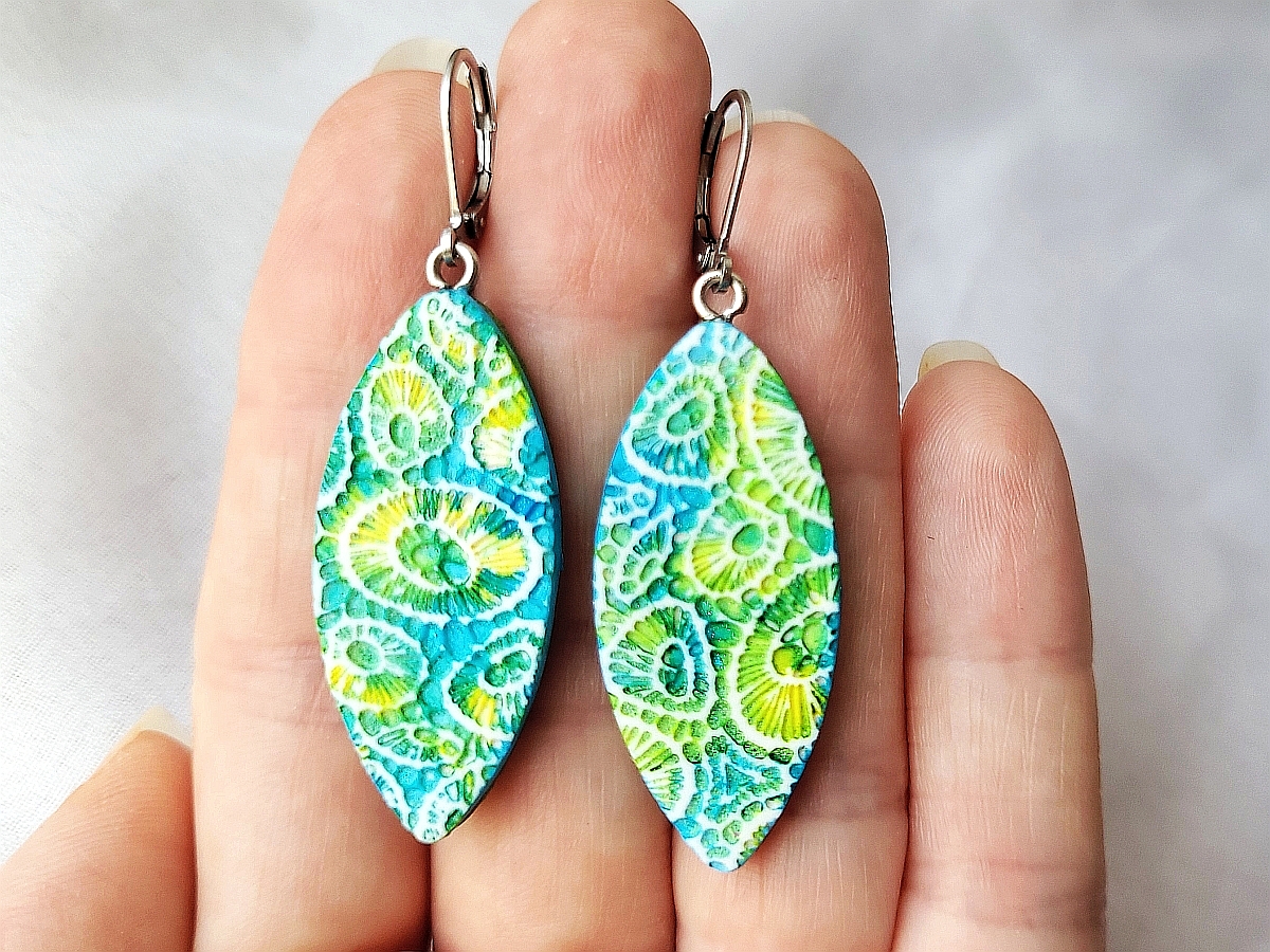 Cerceii Mojito sunt realizați manual din argilă polimerică și accesorizați cu tortițe închise din oțel inxidabil.
