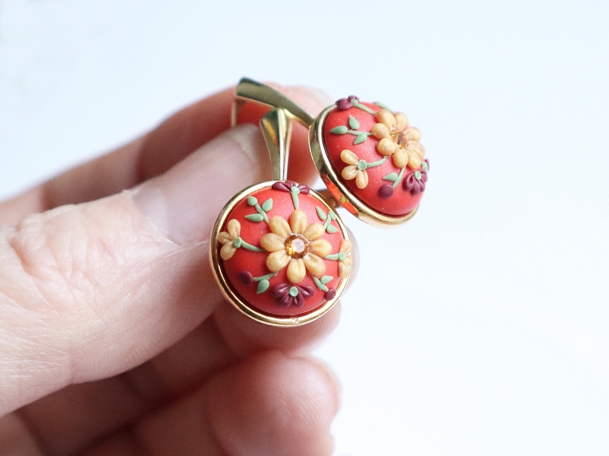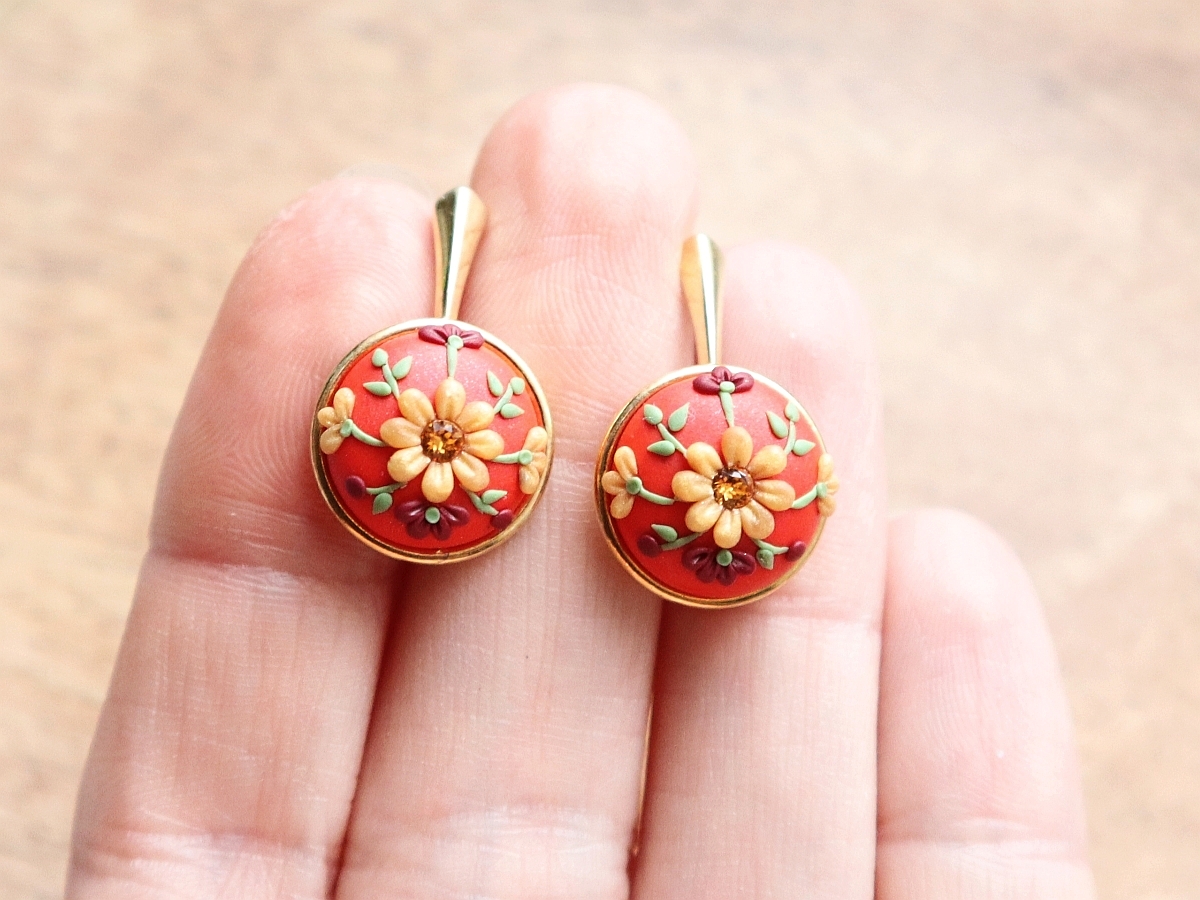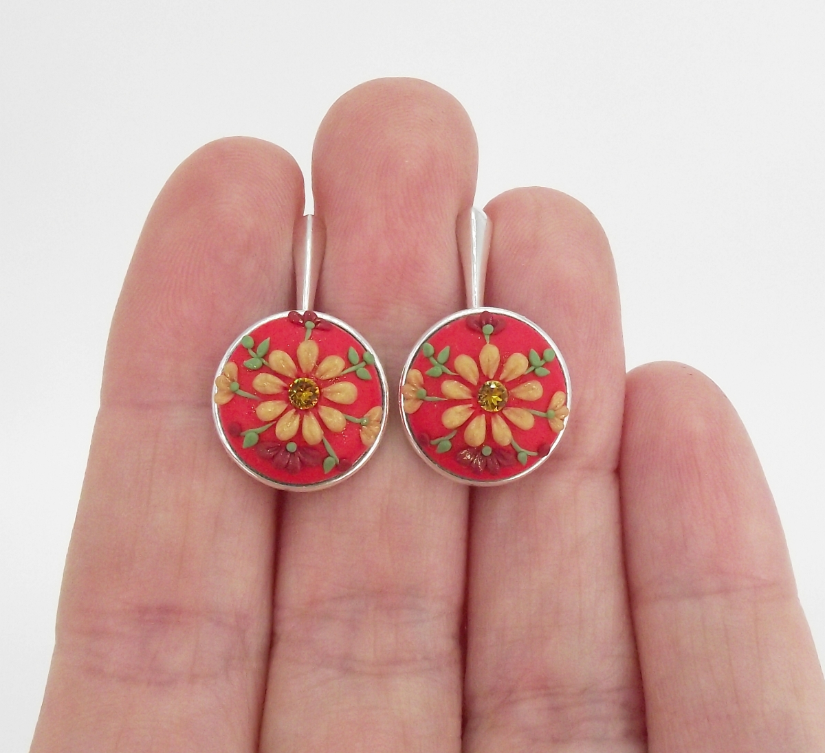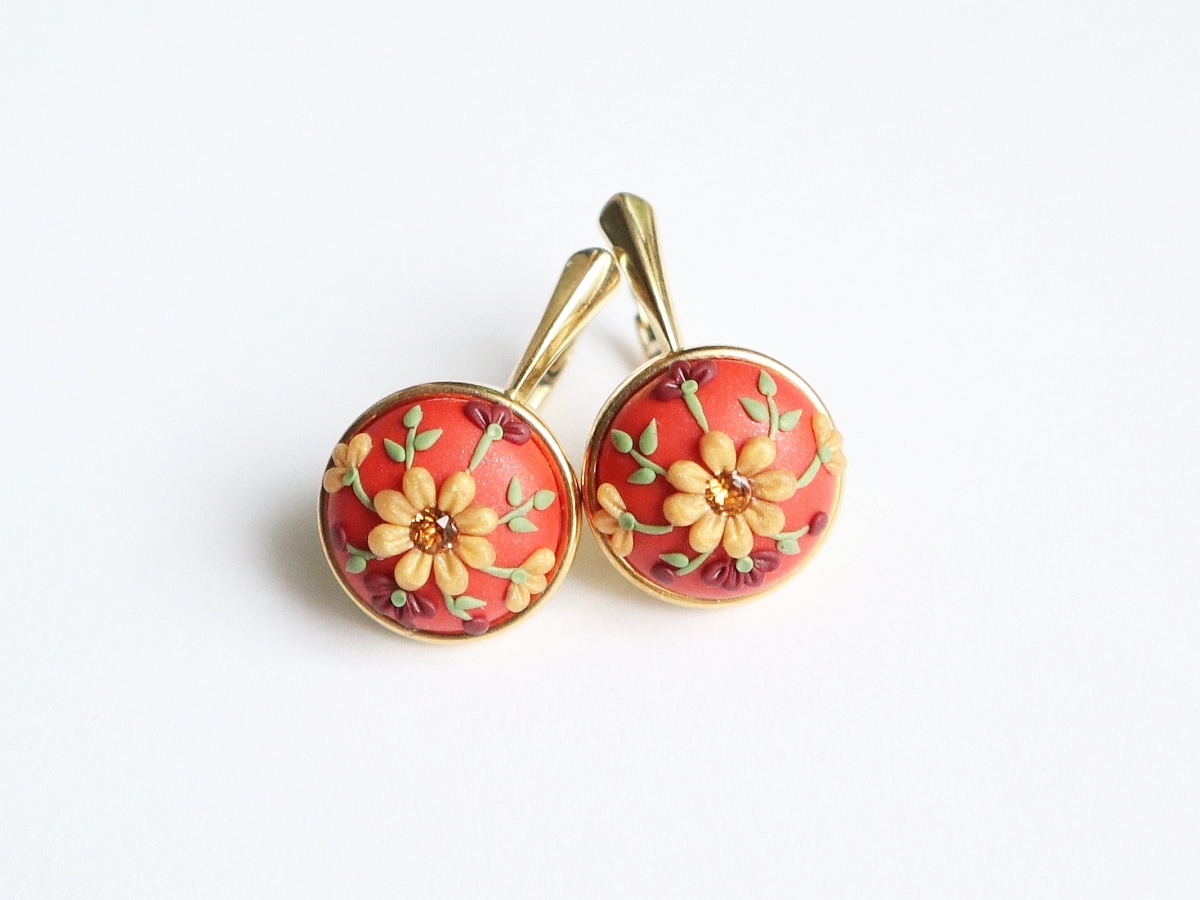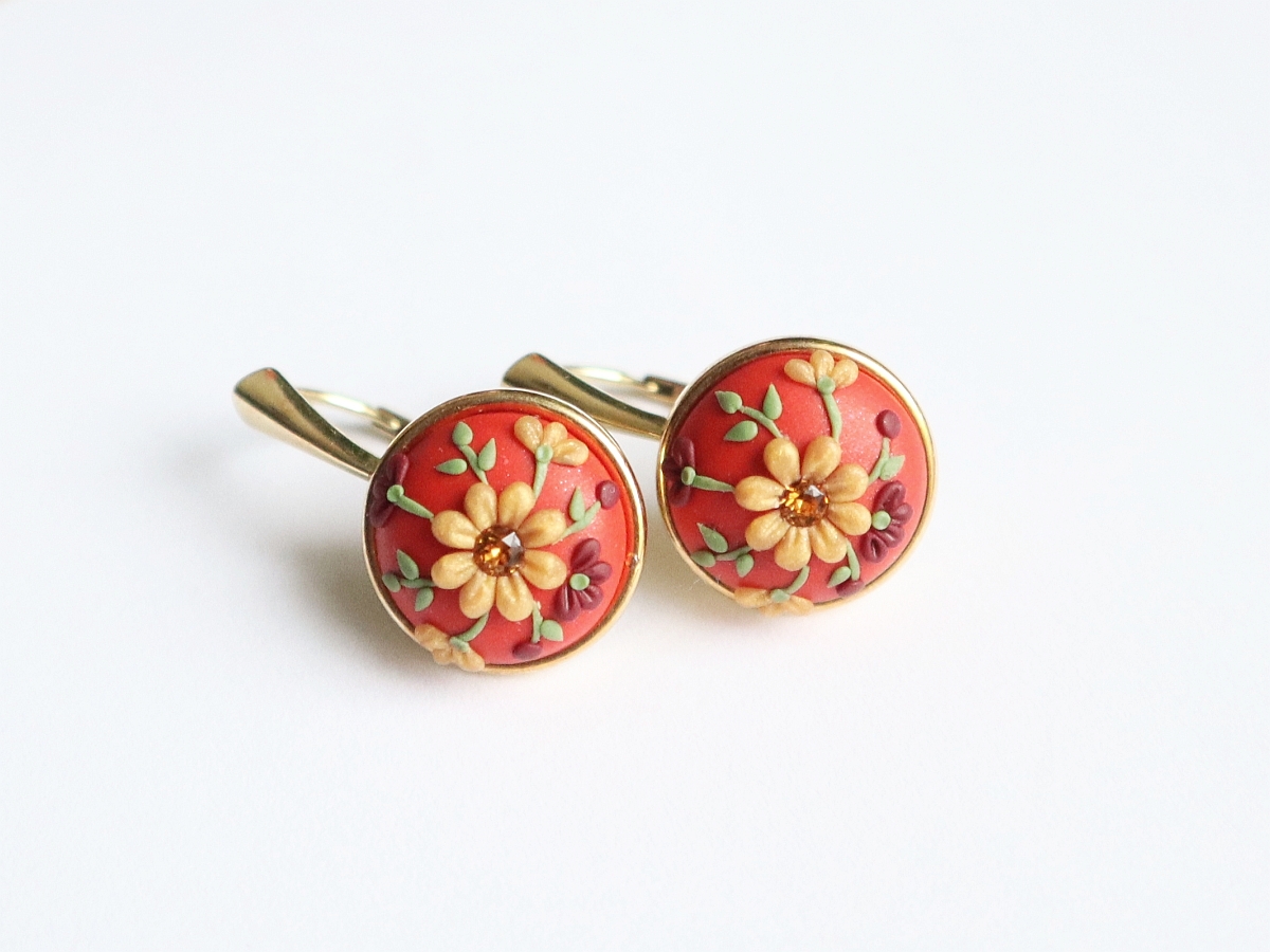 Cerceii de argint Sunset Gold sunt realizați manual cu o deosebită atenție la detalii, pe suport din argint placat cu aur şi o combinaţie cromatică apropiată apusului de soare.