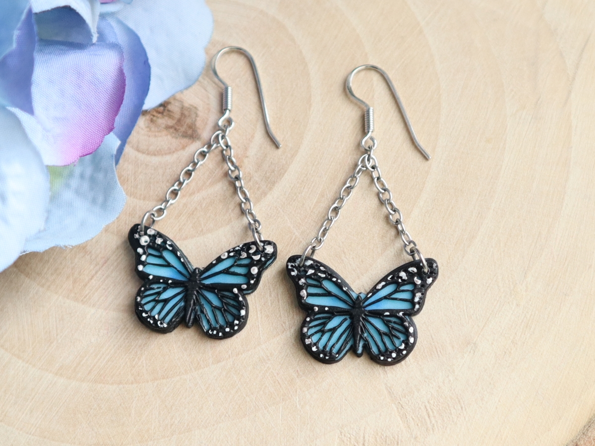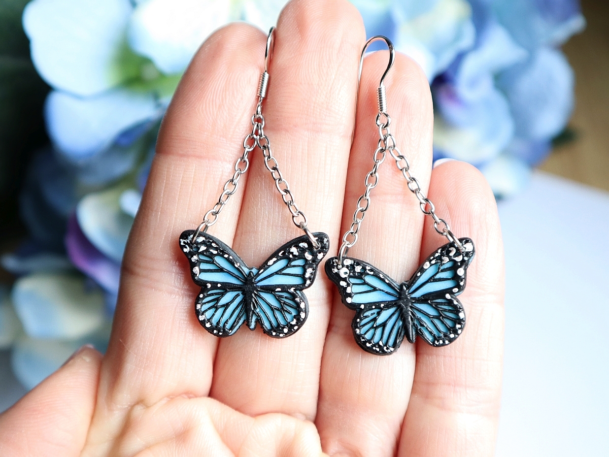 Cerceii cu fluturi monarh realizati manual din argilă polimerică sunt bijuterii rafinate, cu un design elegant și o aură de naturalețe și frumusețe. Acești cercei