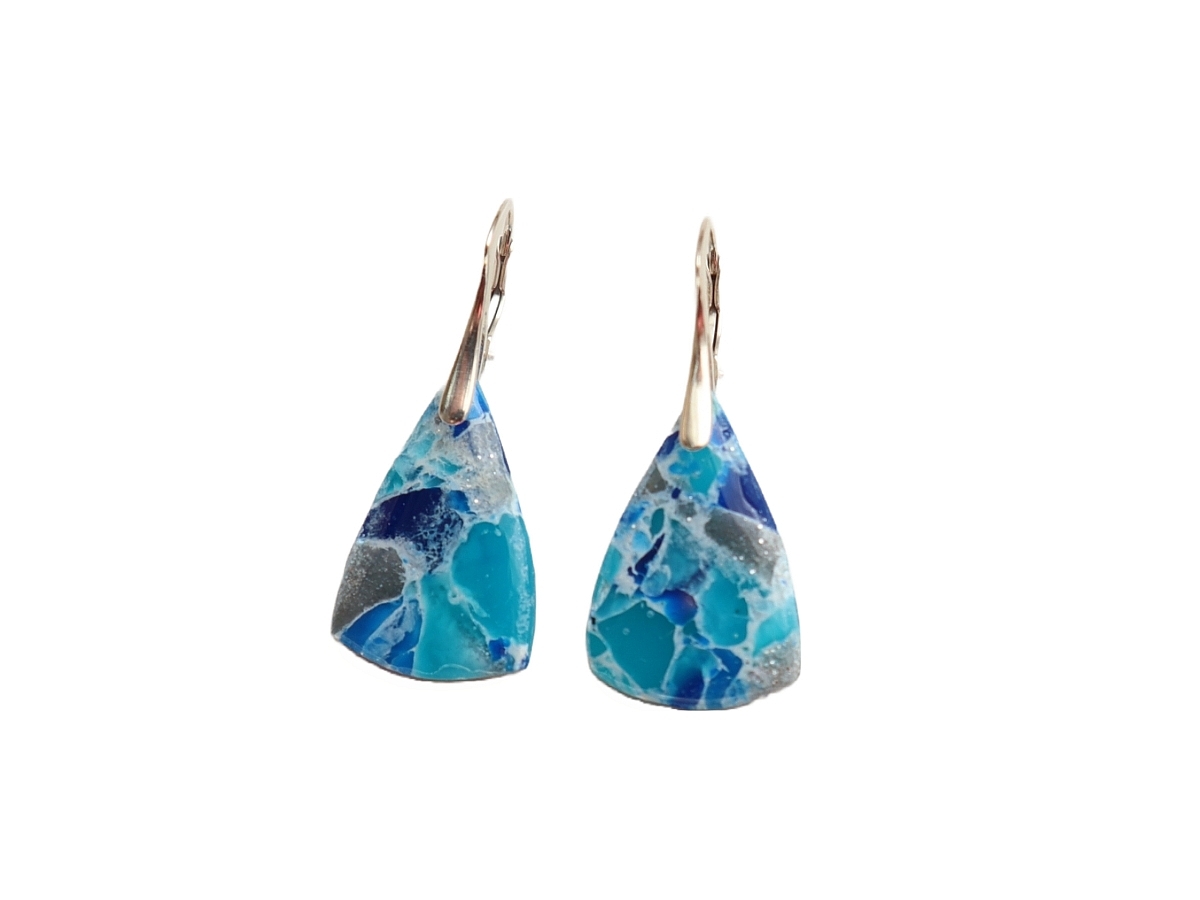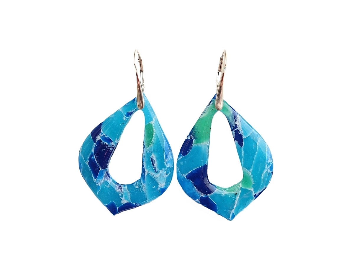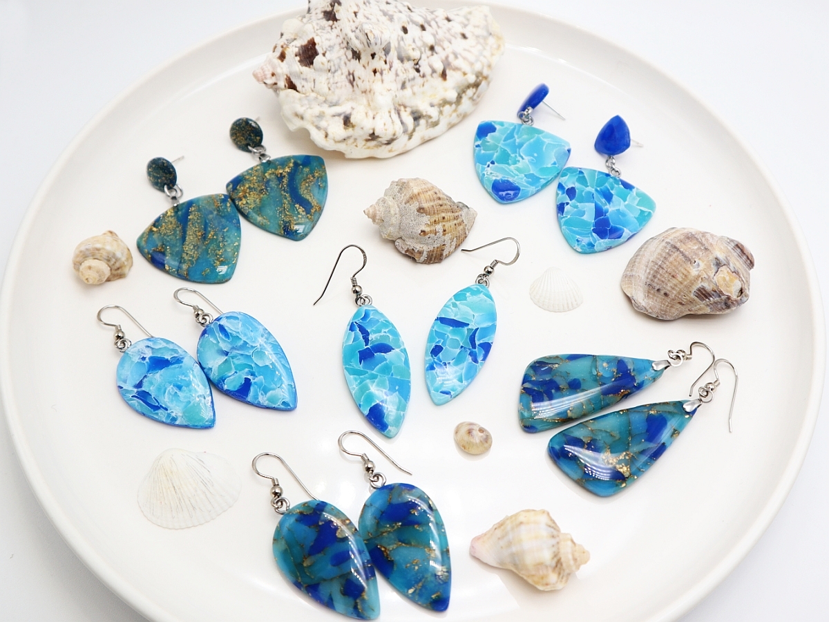 Colecția Cool Water, cercei lucrați manual în combinații unice de culori, te pot duce cu gândul la locuri însorite, lagune albastre, nisipuri aurii…
