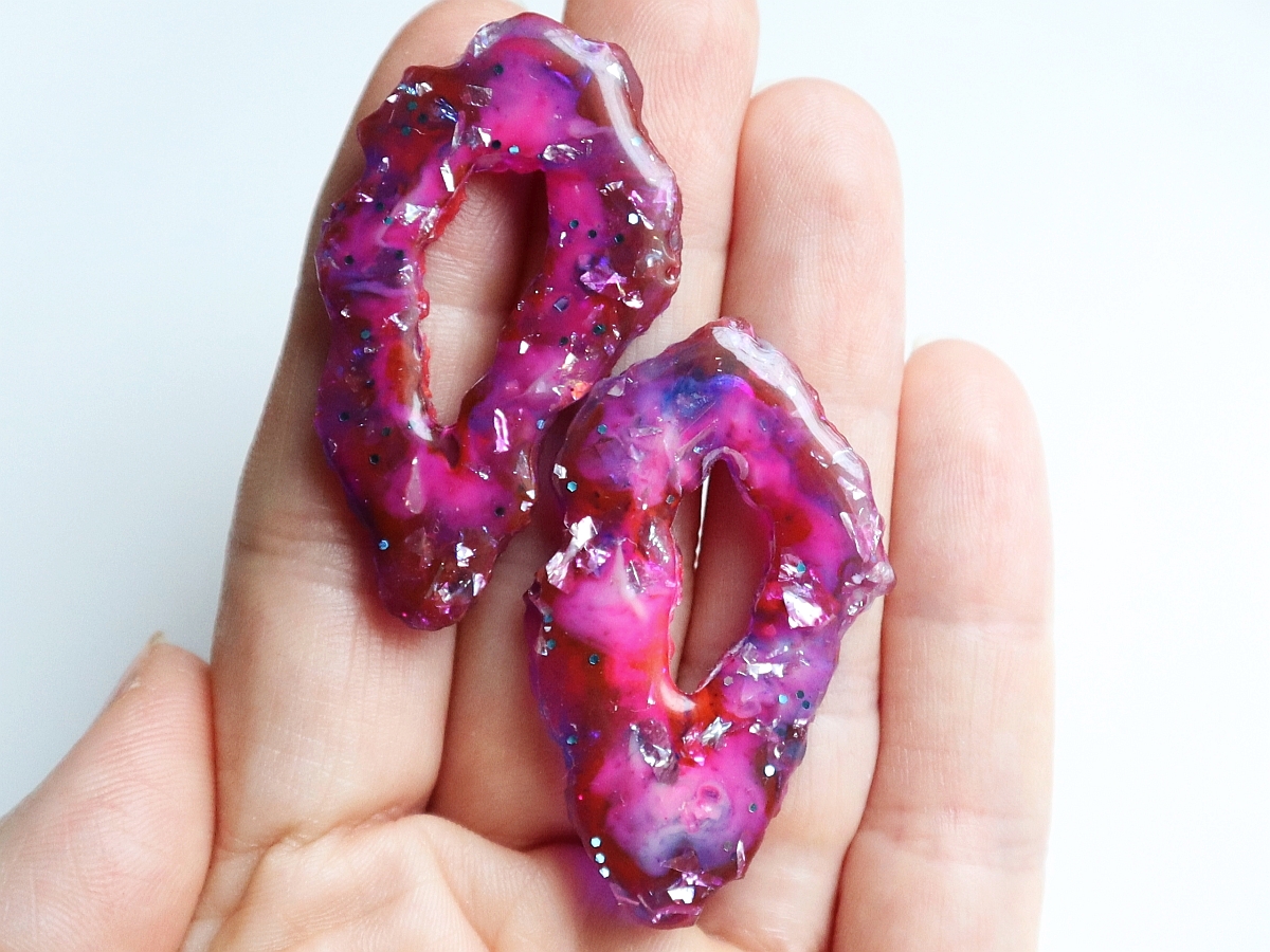 Acești cercei sunt realizați integral din rășina epoxidică, într-un melanj de nuanțe unicat și irepetabile.