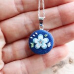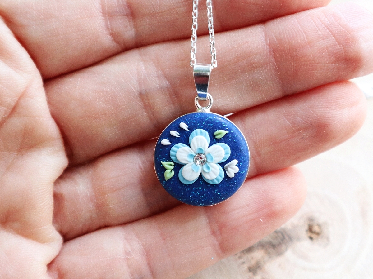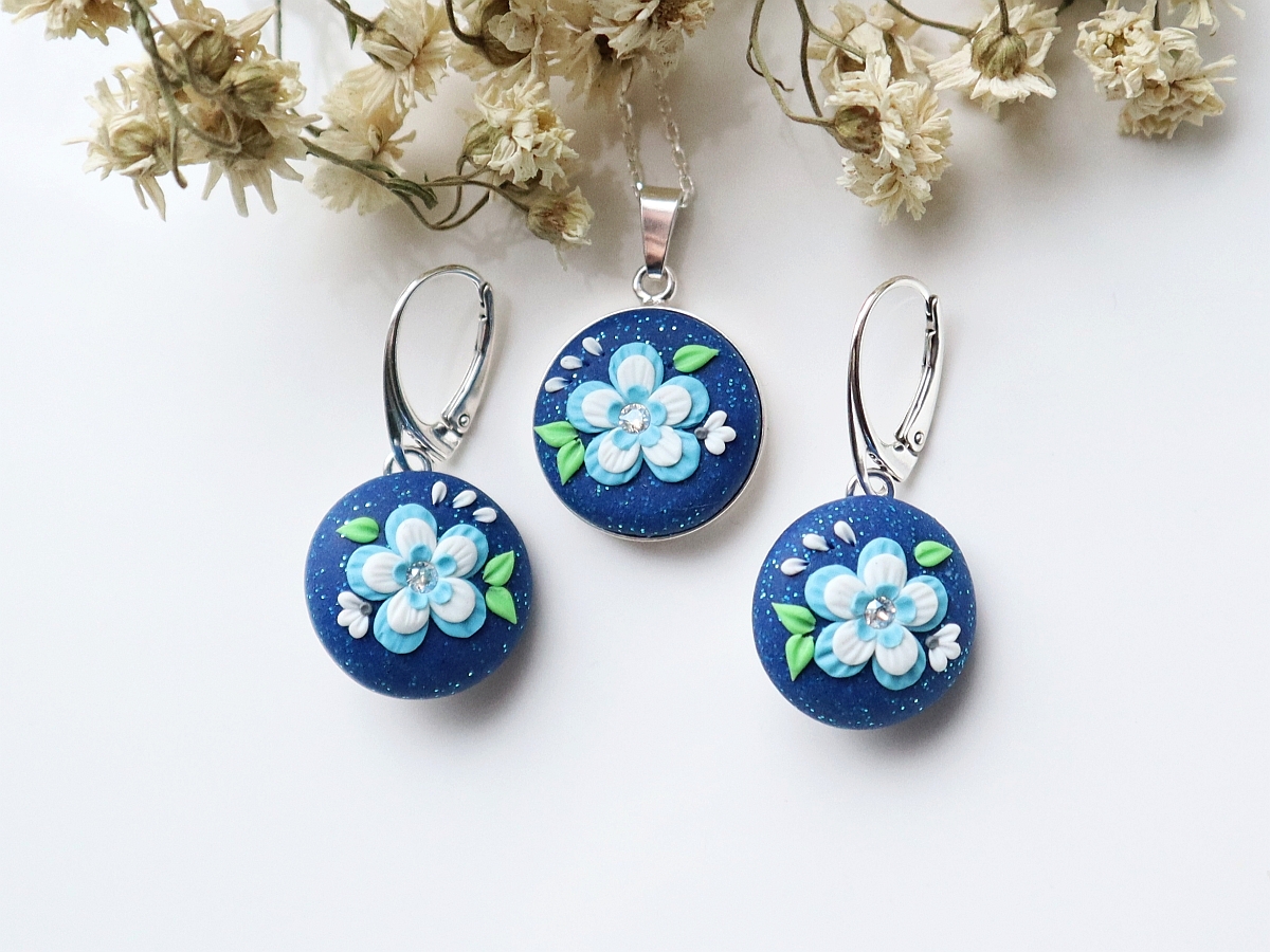 Metalul nobil, forma feminină, cromatica veselă și versatilă, micile petale create și plasate individual, cu grijă, pe fundalul albastru, plin de „steluțe” din particule strălucitoare, toate creează împreună acest produs delicat și de încredere, potrivit și celor mai pretențioase dintre caractere.