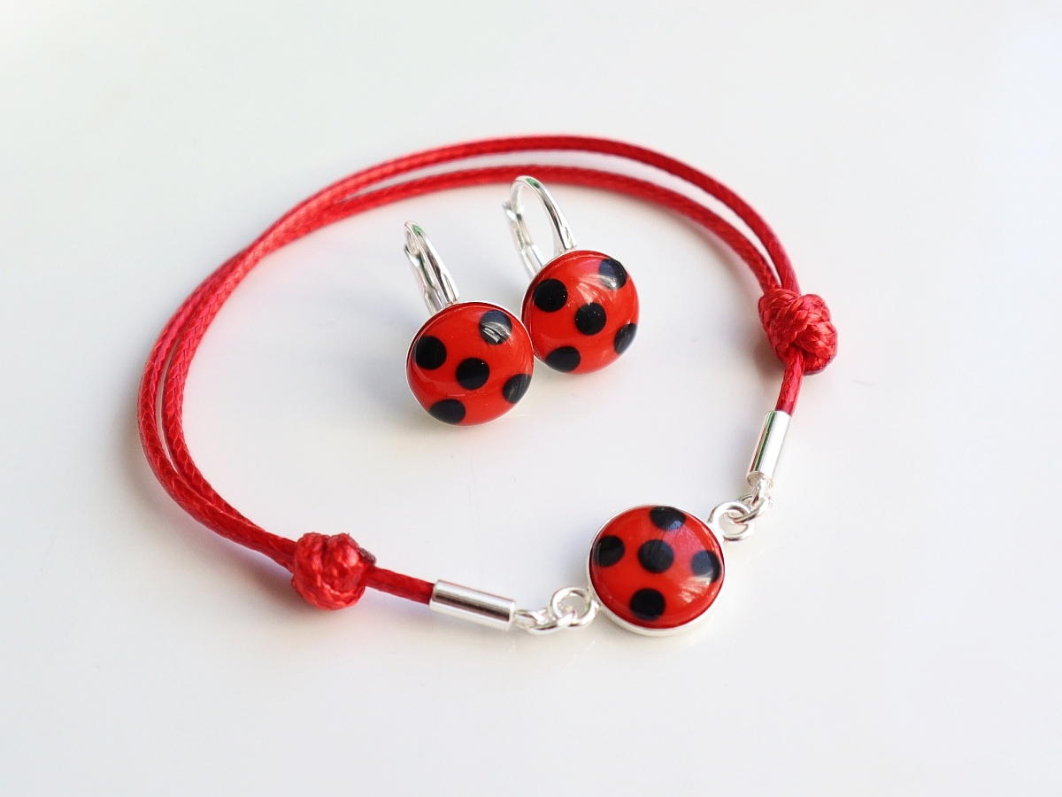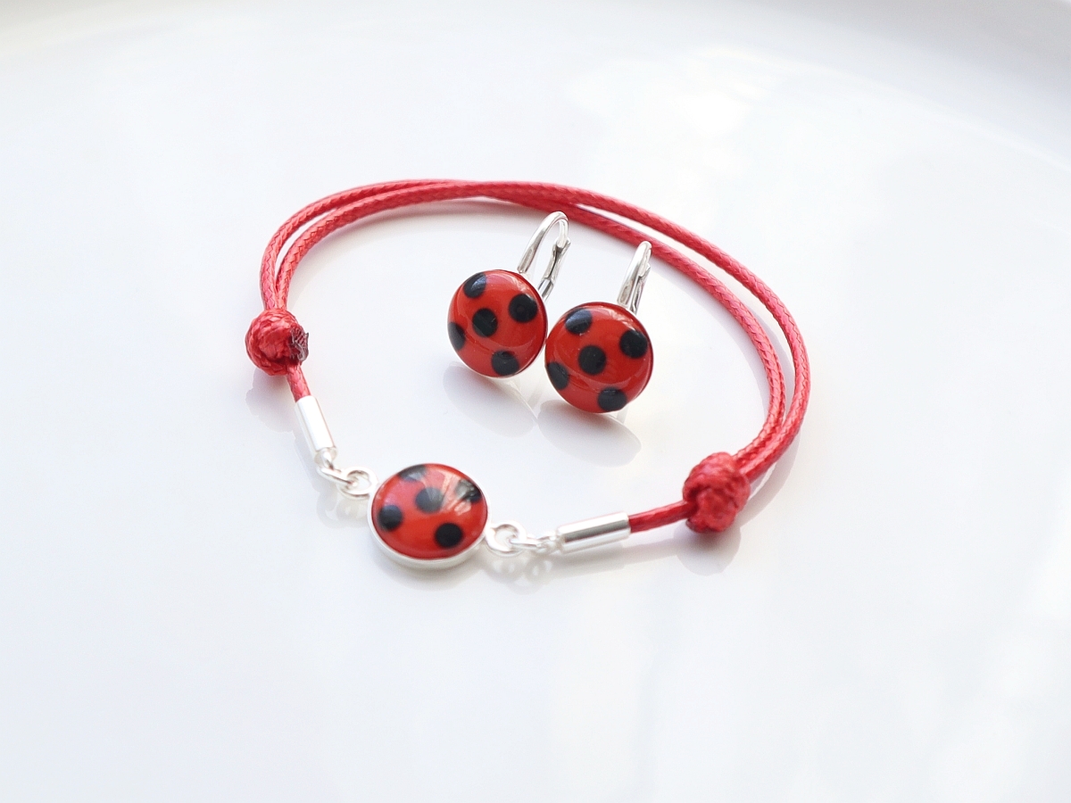 Set cadou Ladybug cercei și brățară decorat handmade pe bază de argint poate fi o încântare pentru oricine iubește miraculoasele buburuze.