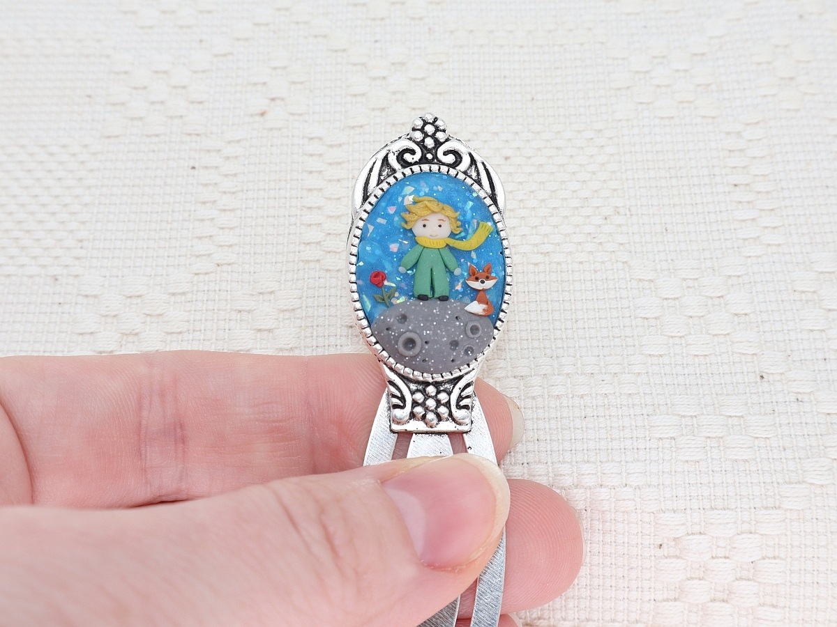 Semnul de carte handmade Micul print, lucrat integral manual, cu o deosebită atenție acordată fiecărui detaliu, este cadoul ideal pentru orice iubitor de cărți.